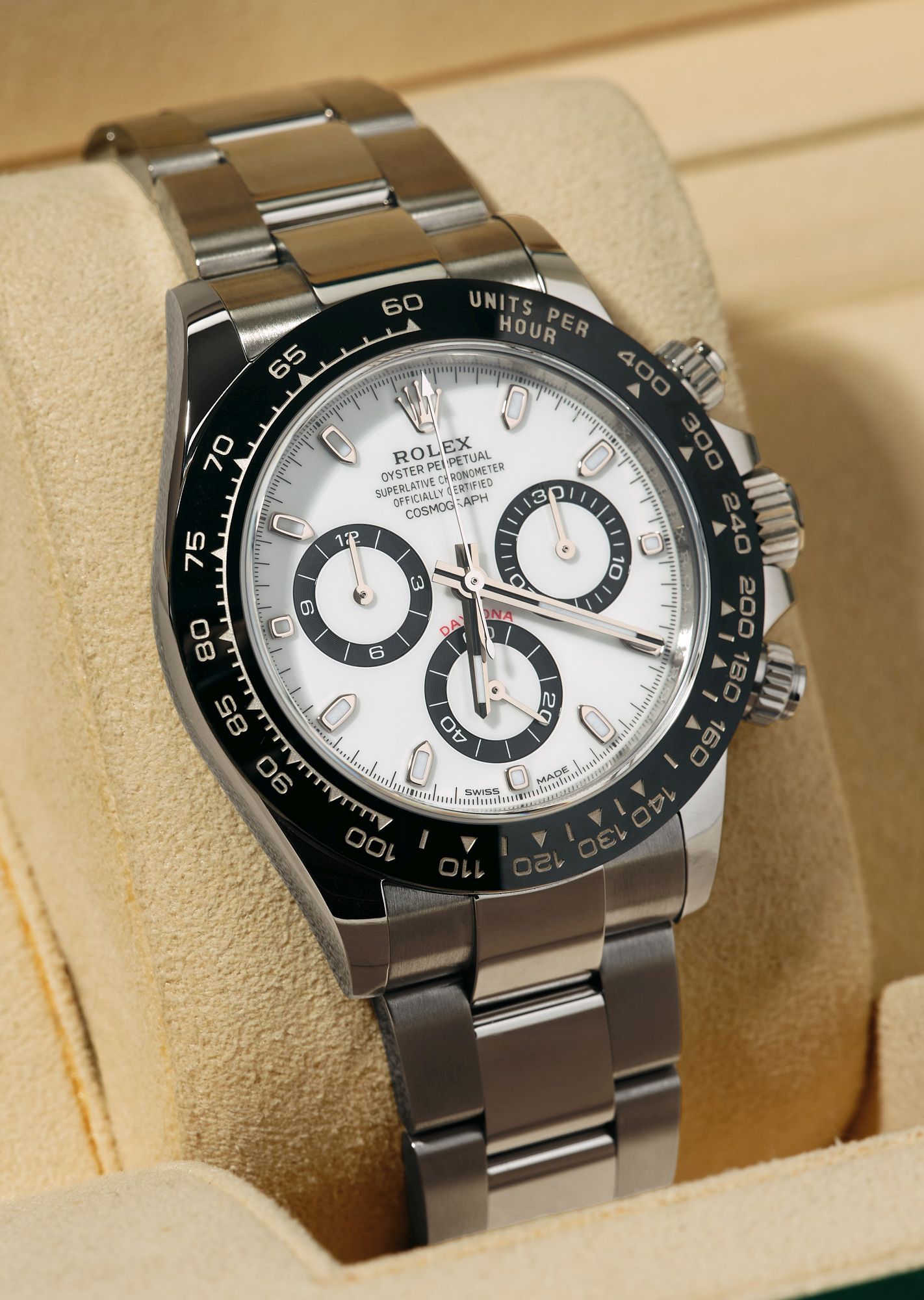 The Rolex Cosmograph Daytona 116500LN is one of the brand’s most iconic models. Introduced in 2016, it refreshed the collection with an ultra-resistant black Cerachrom bezel while preserving the racing DNA that has defined the Daytona legend. Highly sought after on the market, it has become an essential collector’s piece.